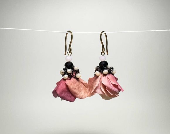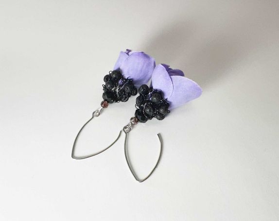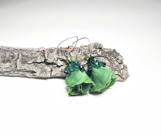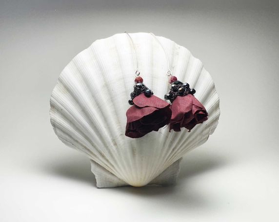 Aus Seidenblumen, Häckeldraht und Glasperlen fertige ich Ohrringe in den unterschiedlichsten Varianten an. Die Halterungen sind aus Edelstahl und somit gut verträglich. Die Ohrringe sind sehr leicht und auffällig. Jedes Paar ist einzigartig.